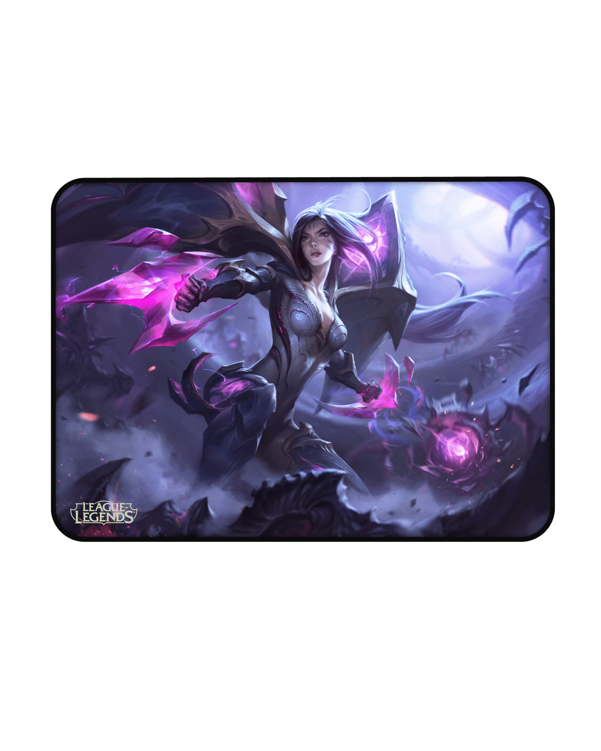 Premium double-stitched mousepad features Kai'sa, The Daughter of the Void in her base splash art.