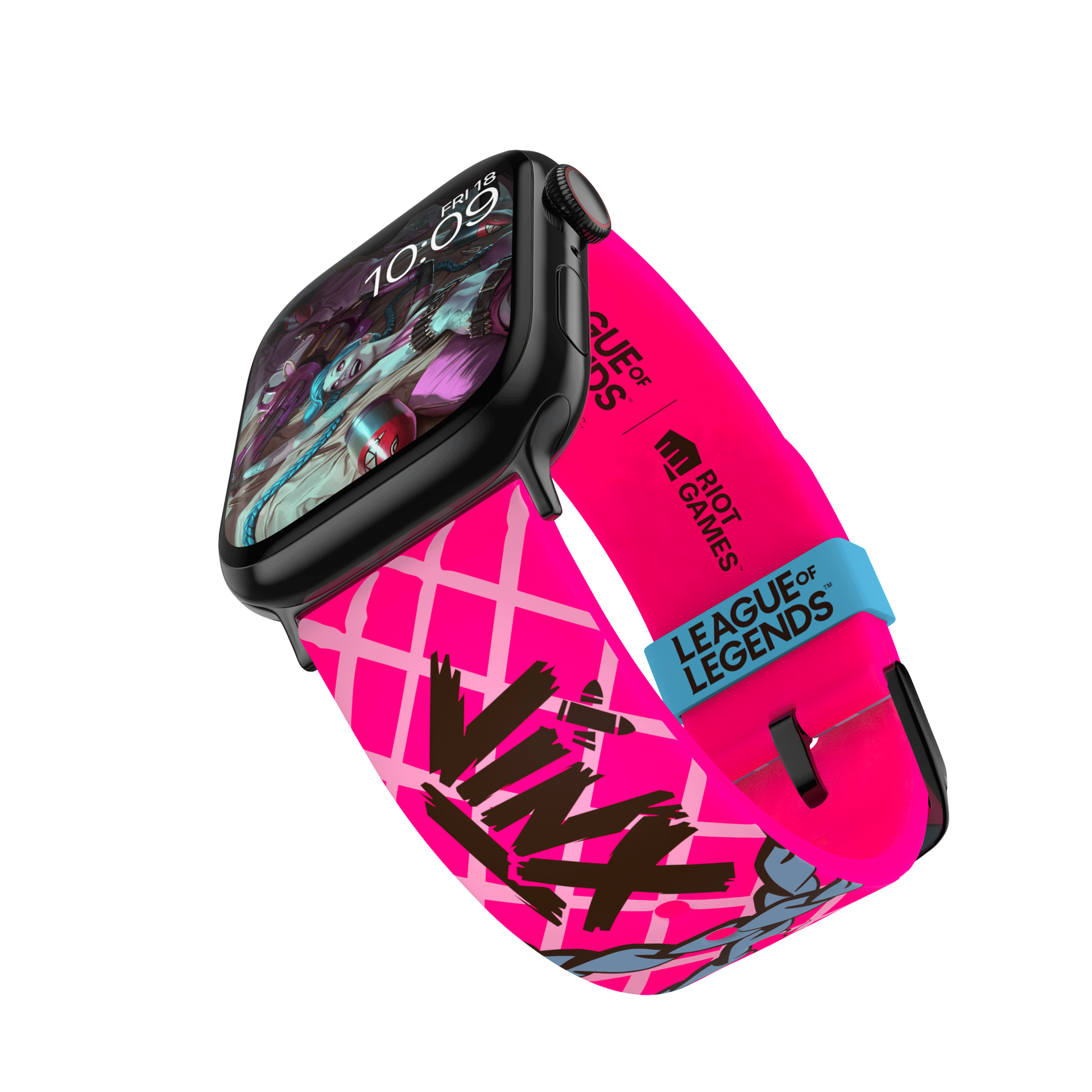 Wreak havoc like only a loose cannon can with this Jinx-inspired smartwatch band. The frenetic design features her iconic arsenal of mayhem, and the soft-touch silicone strap keeps you comfortable throughout the chaos.