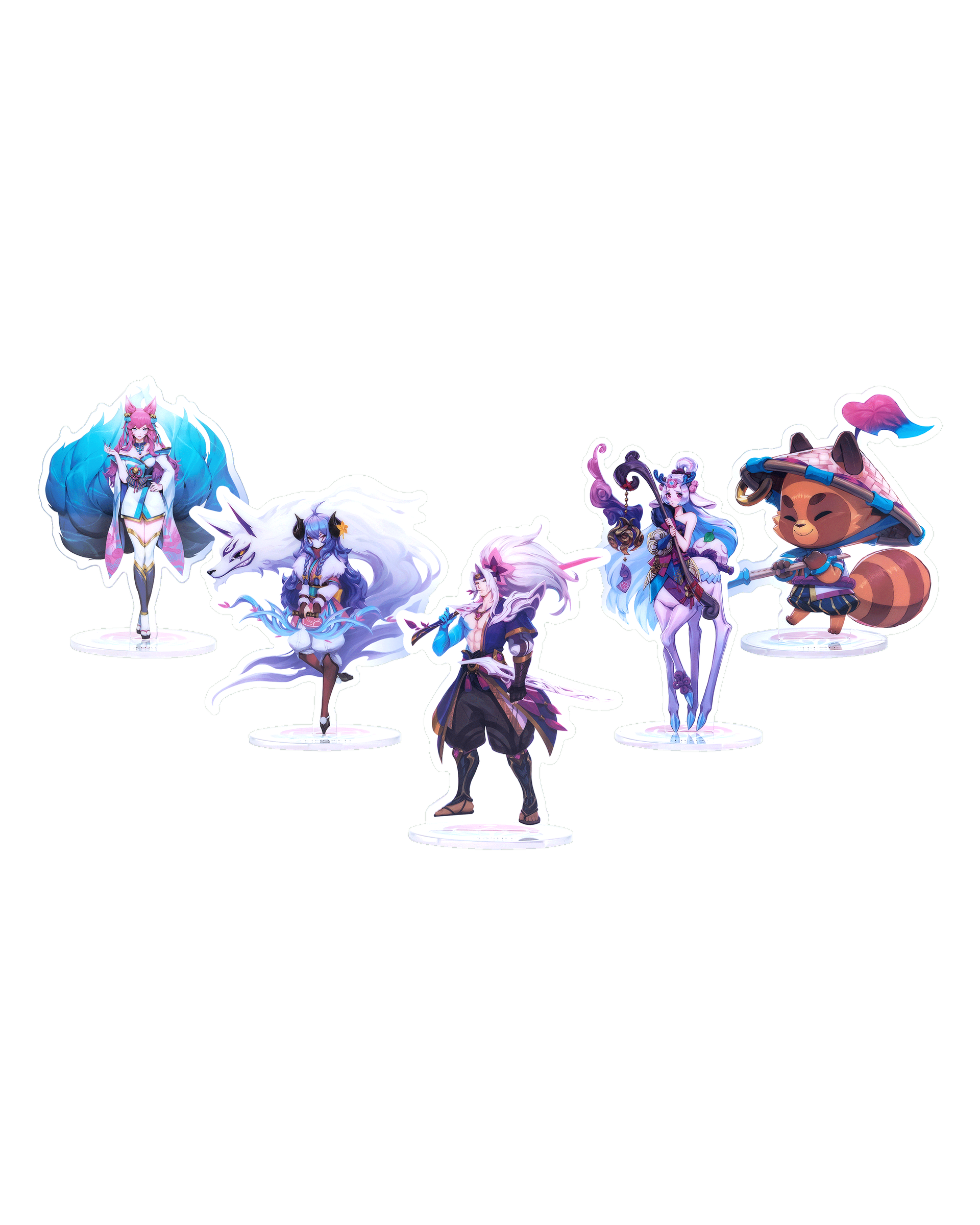 Made of clear acrylic, each double-sided standee features a Spirit Blossom Festival champion and a base to stand and display them wherever your mortal heart chooses.